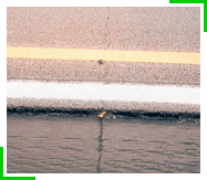 Im unteren Bild ist ein solcher Riss im alten Belag exakt zwischen den